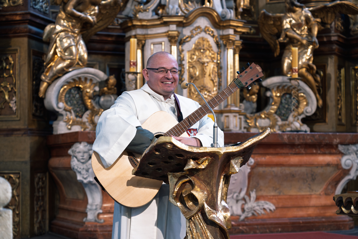 Požehnání bylo proloženo třemi písněmi, které kaplan nejen zazpíval, ale doprovodil také hrou na kytaru. Hudba přirozeně podtrhla klidnou a soustředěnou atmosféru setkání a dala prostor k osobnímu zamyšlení.