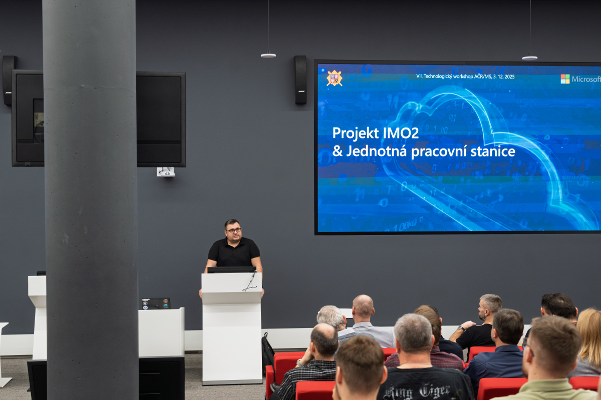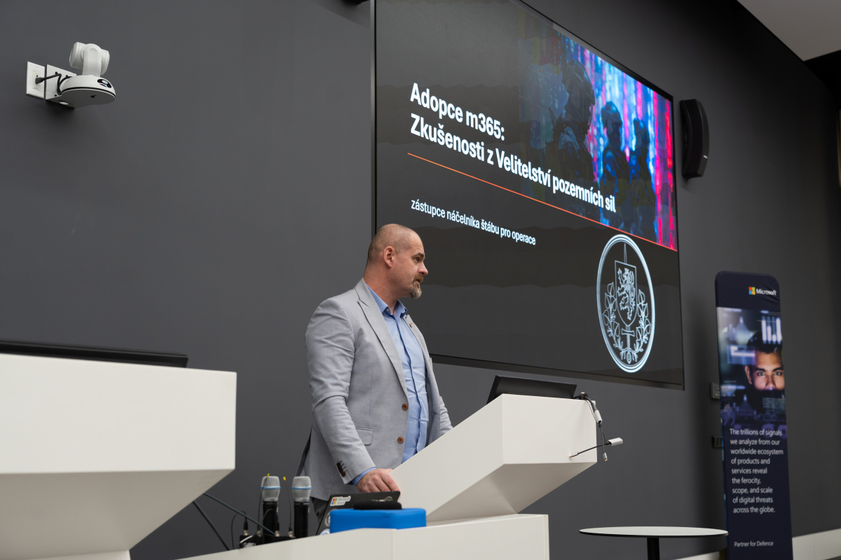 Následovaly dvě prezentace příslušníků Armády ČR, zaměřené na pokračující projekt IMO2, jednotnou pracovní stanici a adopci platformy Microsoft 365. IMO2 je strategický projekt, který implementuje principy Zero Trust architektury – tedy modelu, kde žádný přístup není implicitně důvěryhodný a každá interakce je ověřována. Tento přístup je klíčový pro ochranu citlivých dat a minimalizaci rizik v prostředí, které čelí stále sofistikovanějším kybernetickým hrozbám.